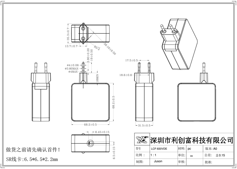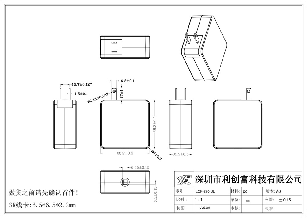 描述:65W-85W充電器外殼 采用PC塑料材質做的,符合ROHS環保標準,性能好,耐高溫,尺寸:68.2*68.2*31.5mm 規格:歐規、美規、中規,廣泛應用于多種類型的充電器外殼。